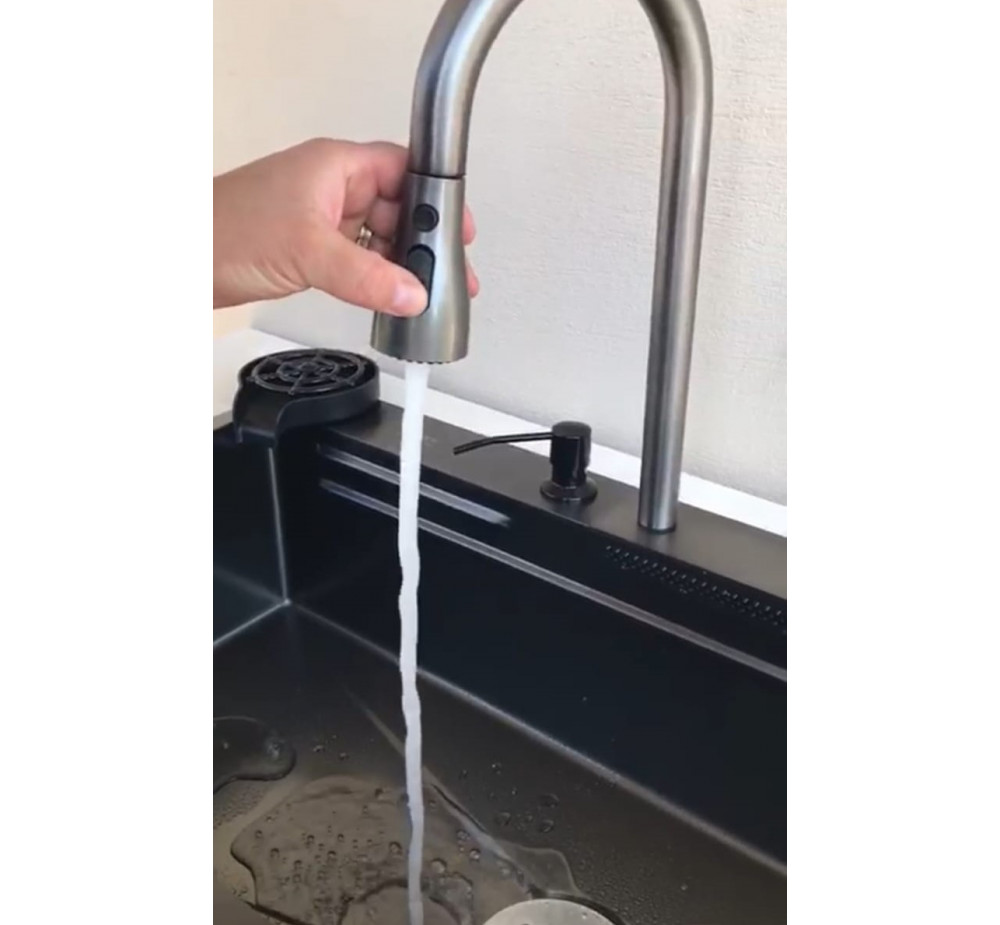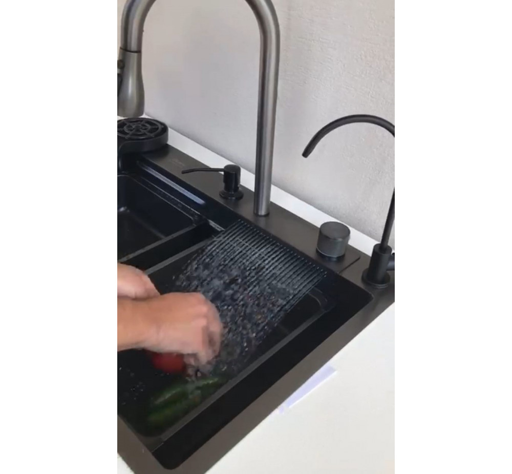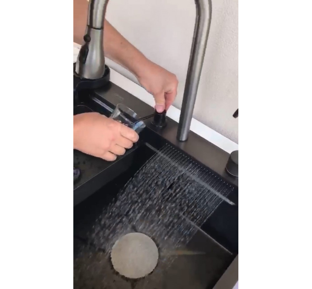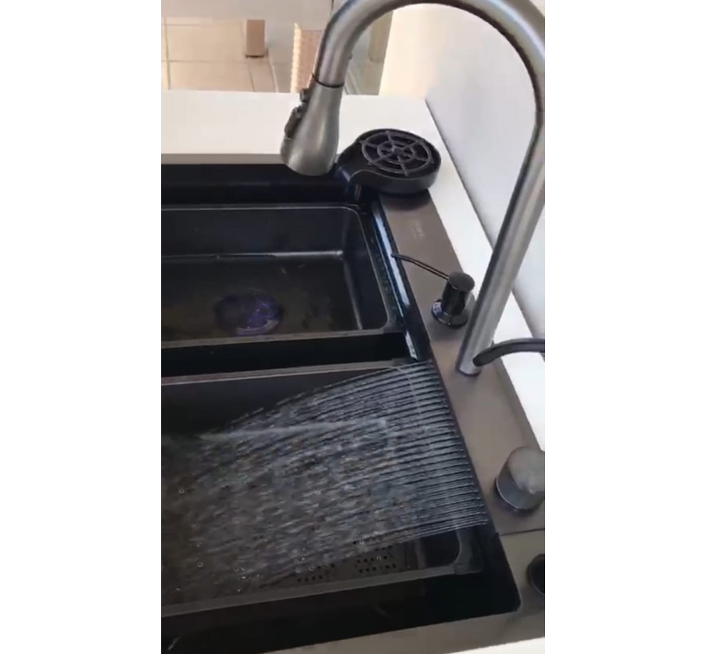 Şelale Mutfak Evye Seti Akıllı Teknolojik Yeni Nesil Siyah Mutfak Evyesi