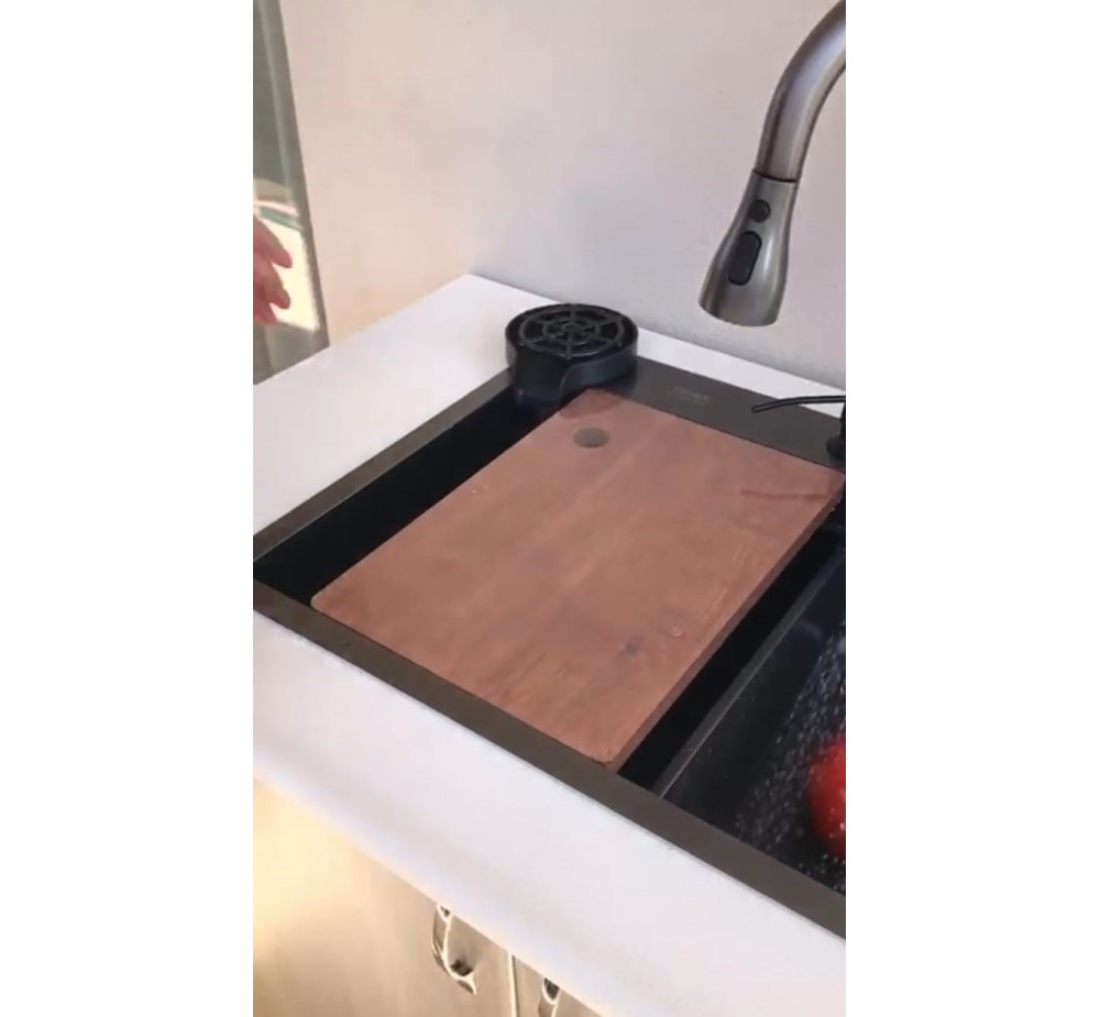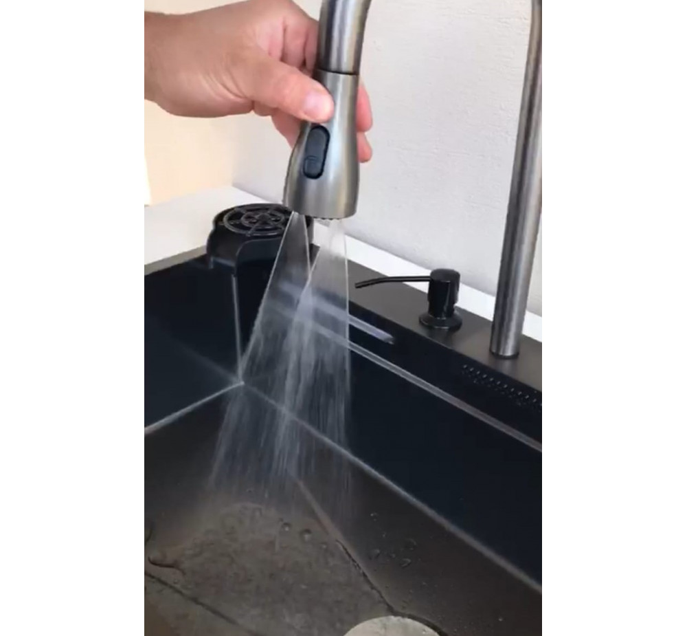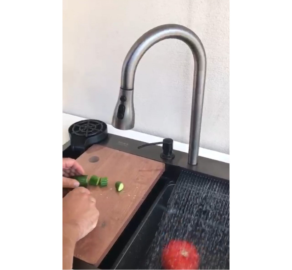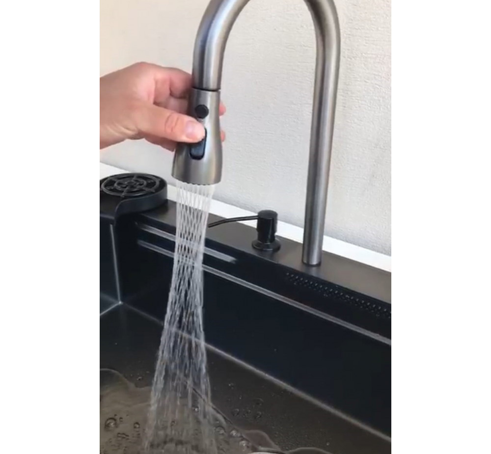 Şelale Mutfak Evye Seti Akıllı Teknolojik Yeni Nesil Siyah Mutfak Evyesi